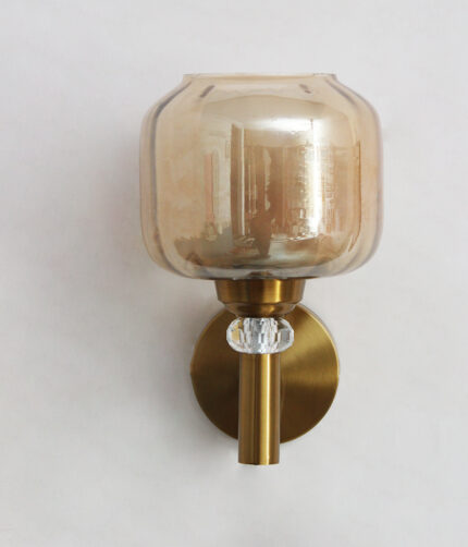 Rounded Cube Glass Wall Sconce with Amber Shade