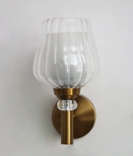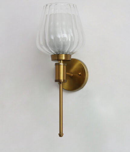 Fluted Clear Tulip Glass Wall Sconce – Brass Finish