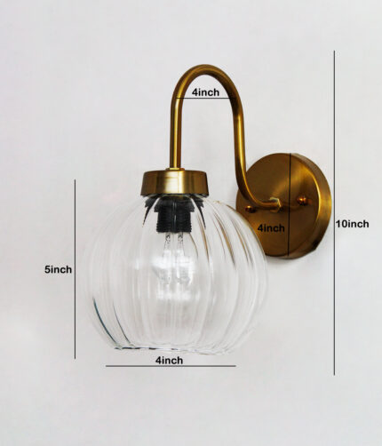 Modern Brass Wall Sconce Clear Ribbed Glass Light