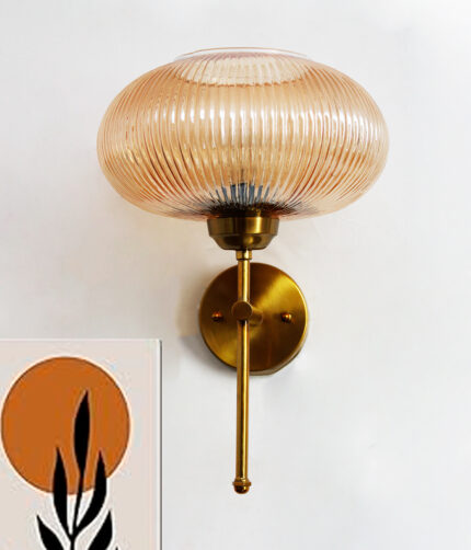 Decorative Brass Wall Sconce Ribbed Amber Glass