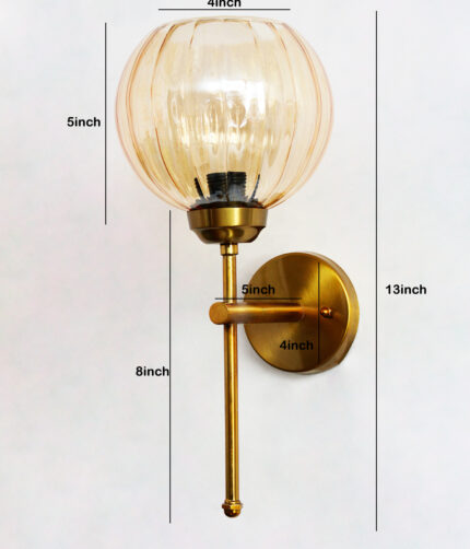 Elegant Brass Wall Sconce Amber Glass Modern Lighting