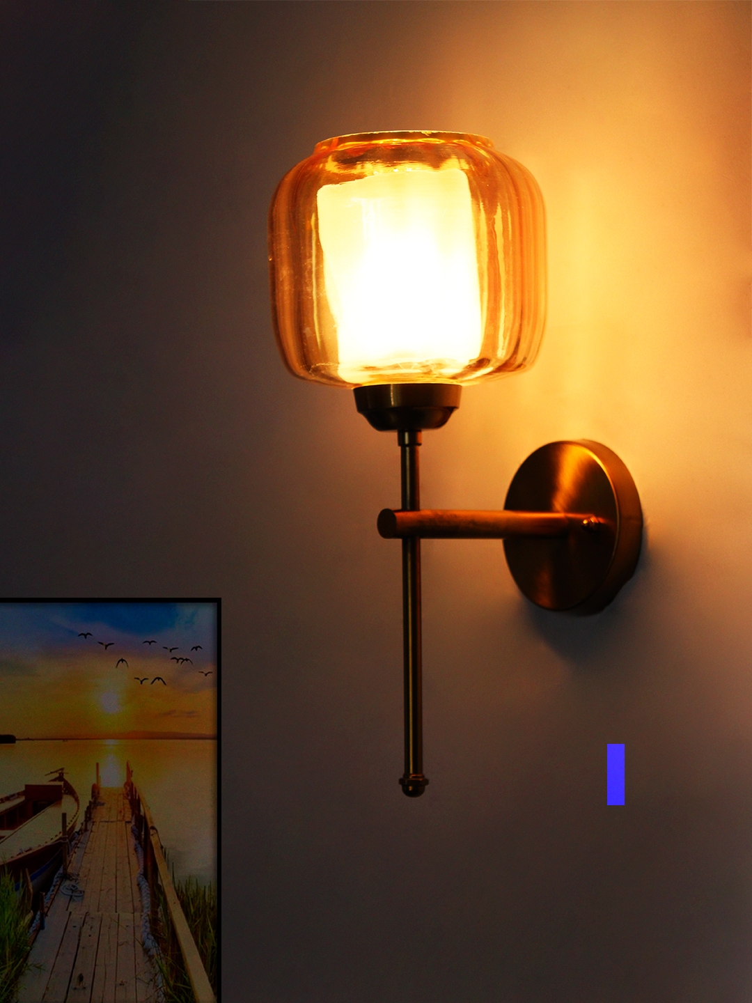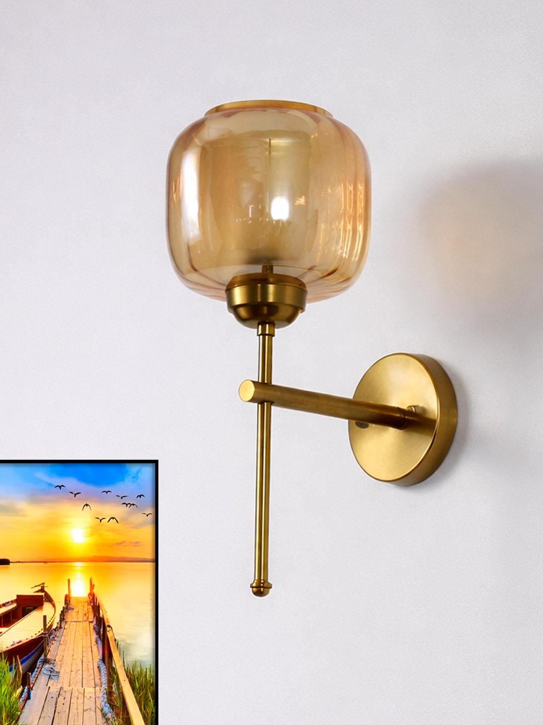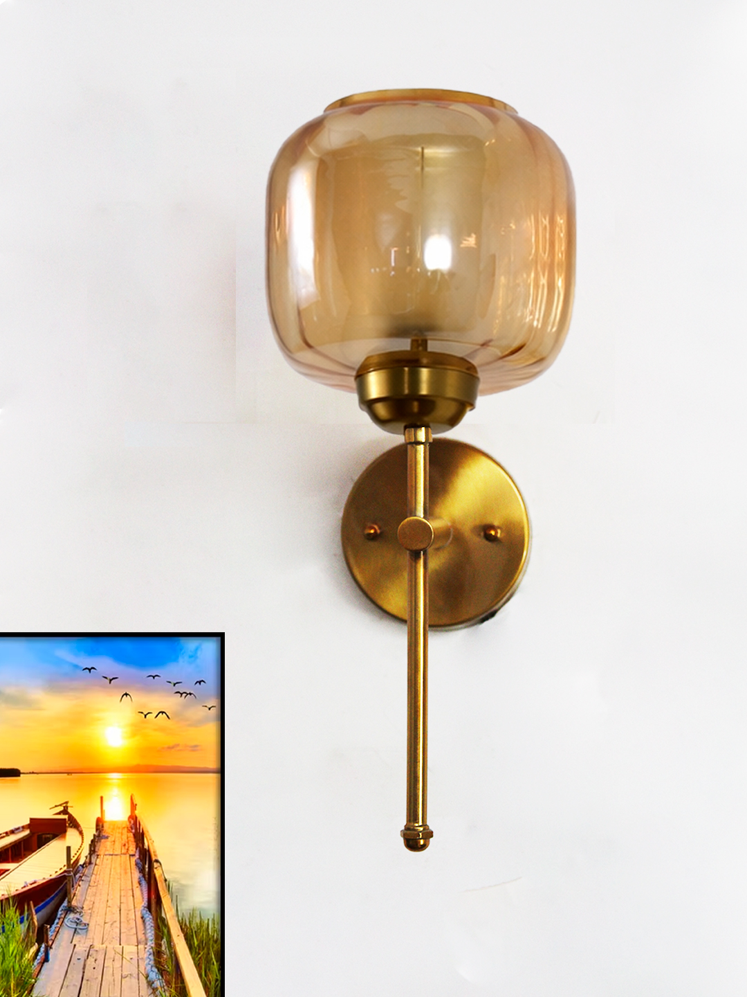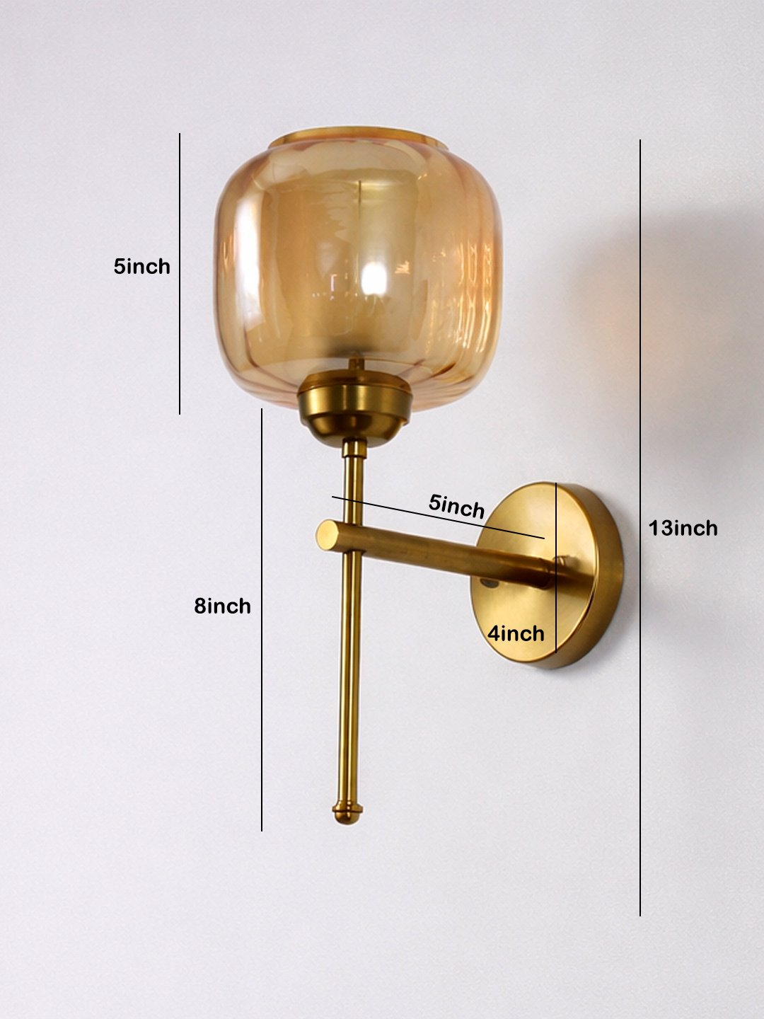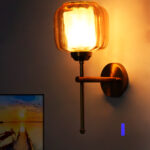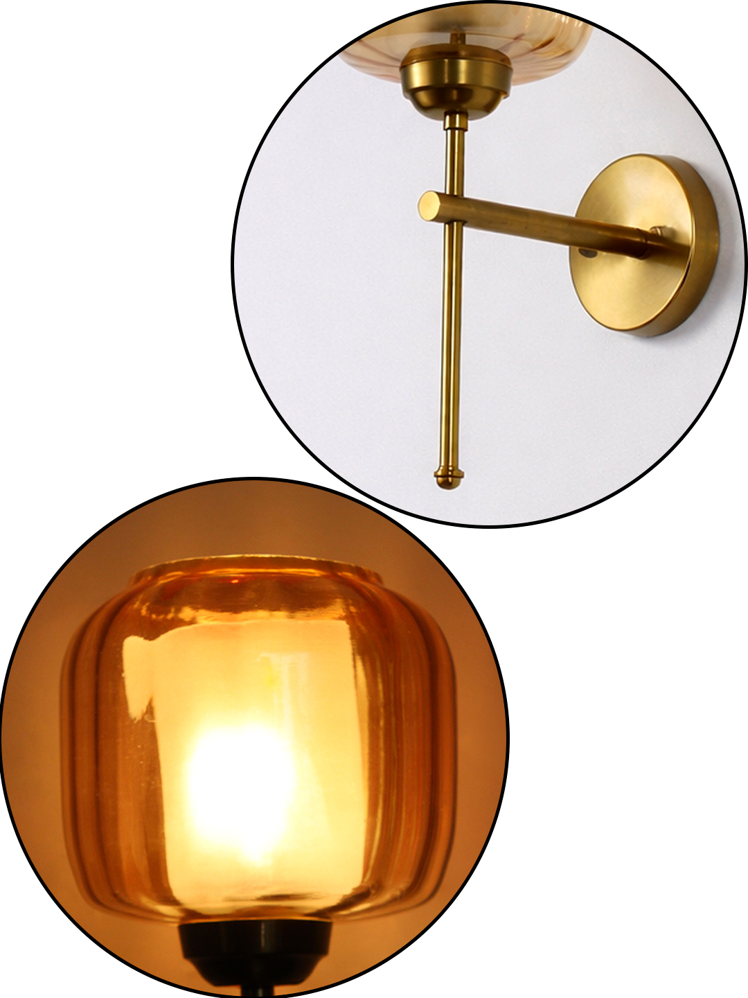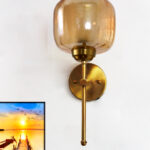 Amber Glass Brass Wall Sconce Modern Light Fixture