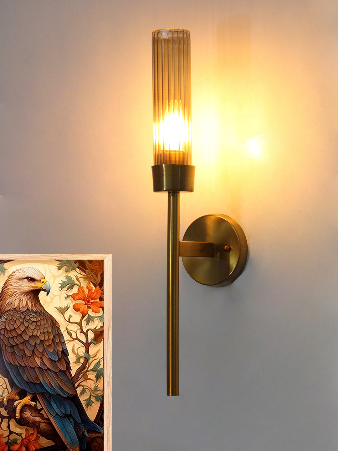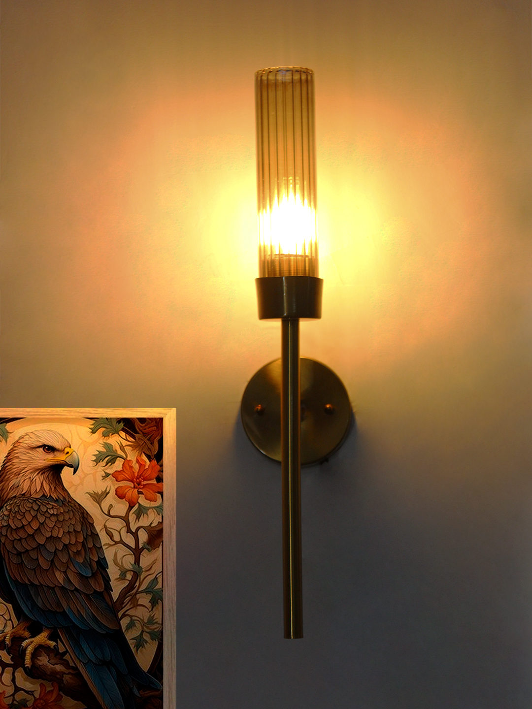 The  Wall Lamp Brass is crafted to provide both style and functionality. Its tall, vertical silhouette adds height and dimension to your walls, making it an excellent choice for hallways, bedrooms, living rooms, or entryways. The cylindrical glass shade softly diffuses light, reducing glare and creating a cozy, inviting atmosphere that enhances the overall mood of your space.