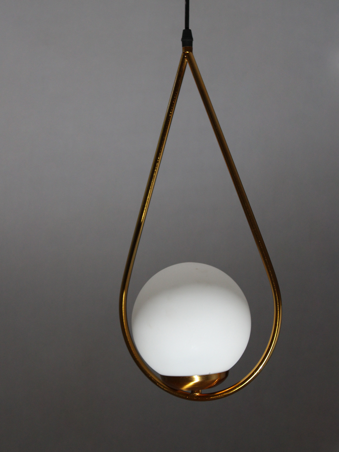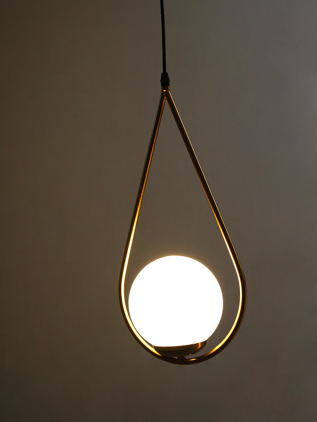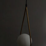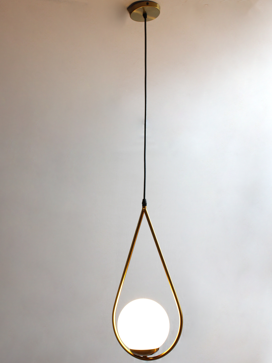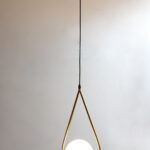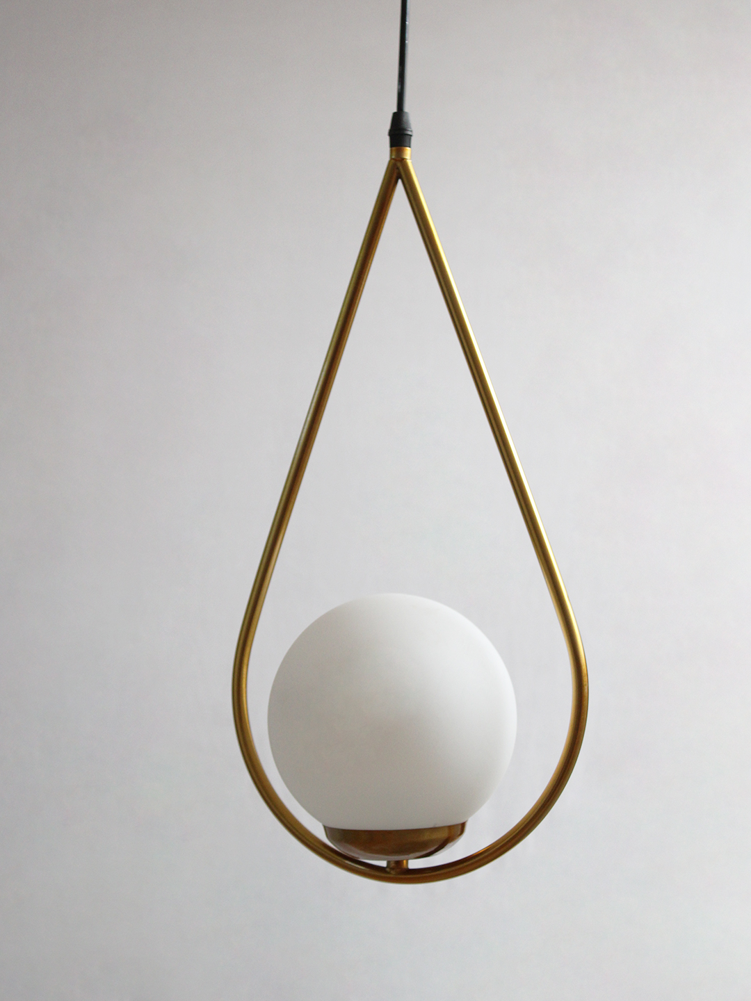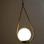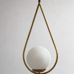 Suspended from a slim black cord, the pendant maintains a sleek, balanced aesthetic that fits effortlessly into various ceiling heights and room sizes. Every detail has been thoughtfully considered—from the curve of the brass arm to the roundness of the globe—to ensure durability, design harmony, and visual impact. The combination of metal and frosted glass offers a timeless contrast that elevates both modern and classic design themes.