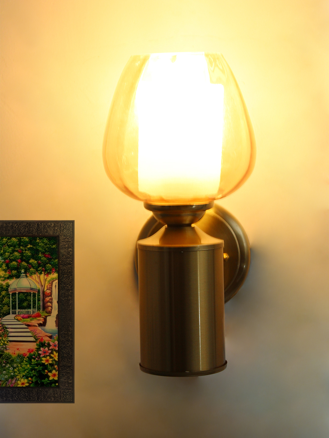Perfect for bedrooms, living rooms, hallways, dining areas, or boutique hotels, this wall sconce functions well as ambient or accent lighting. It is especially effective when paired with warm LED bulbs, which enhance the amber glass and amplify the inviting glow. Whether installed individually as a feature piece or used in pairs for symmetry, the sconce elevates the atmosphere of any room.