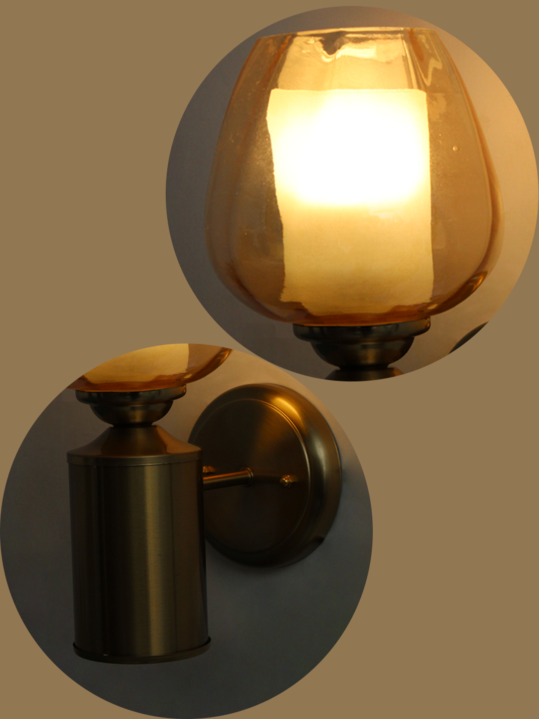 Crafted from high-quality metal and durable glass, this Brushed Brass Wall Sconce with Amber Glass Shade is built for long-lasting performance. The glass shade is easy to remove and clean, ensuring the light maintains its clarity and charm over time. With its harmonious blend of warm materials, soft illumination, and timeless design, this wall sconce is an ideal choice for those seeking elegant lighting that enhances both mood and style.