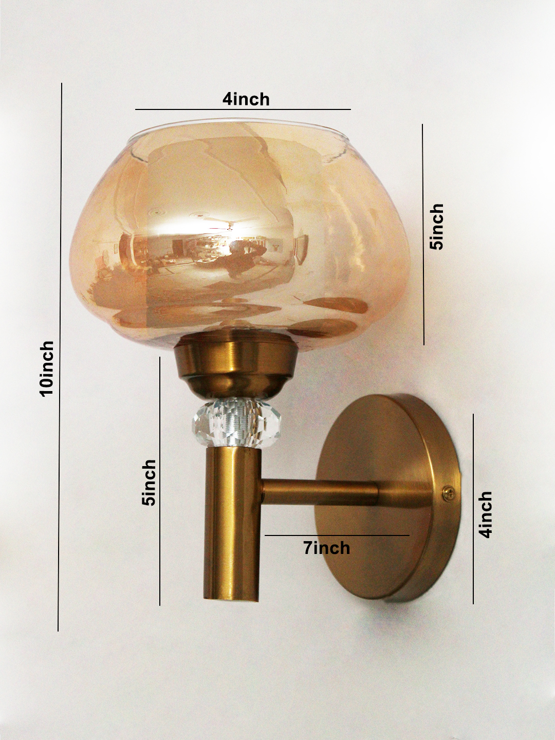 This Decorative Amber Bubble Glass Wall Light blends warm metallic tones with soft, sculptural glass to create a refined lighting statement that feels both timeless and modern. Designed with a rounded amber-tinted glass shade, the fixture gently diffuses light, casting a cozy, ambient glow that enhances the mood of any interior space. The reflective glass subtly mirrors its surroundings, adding depth and visual interest without overpowering the room.