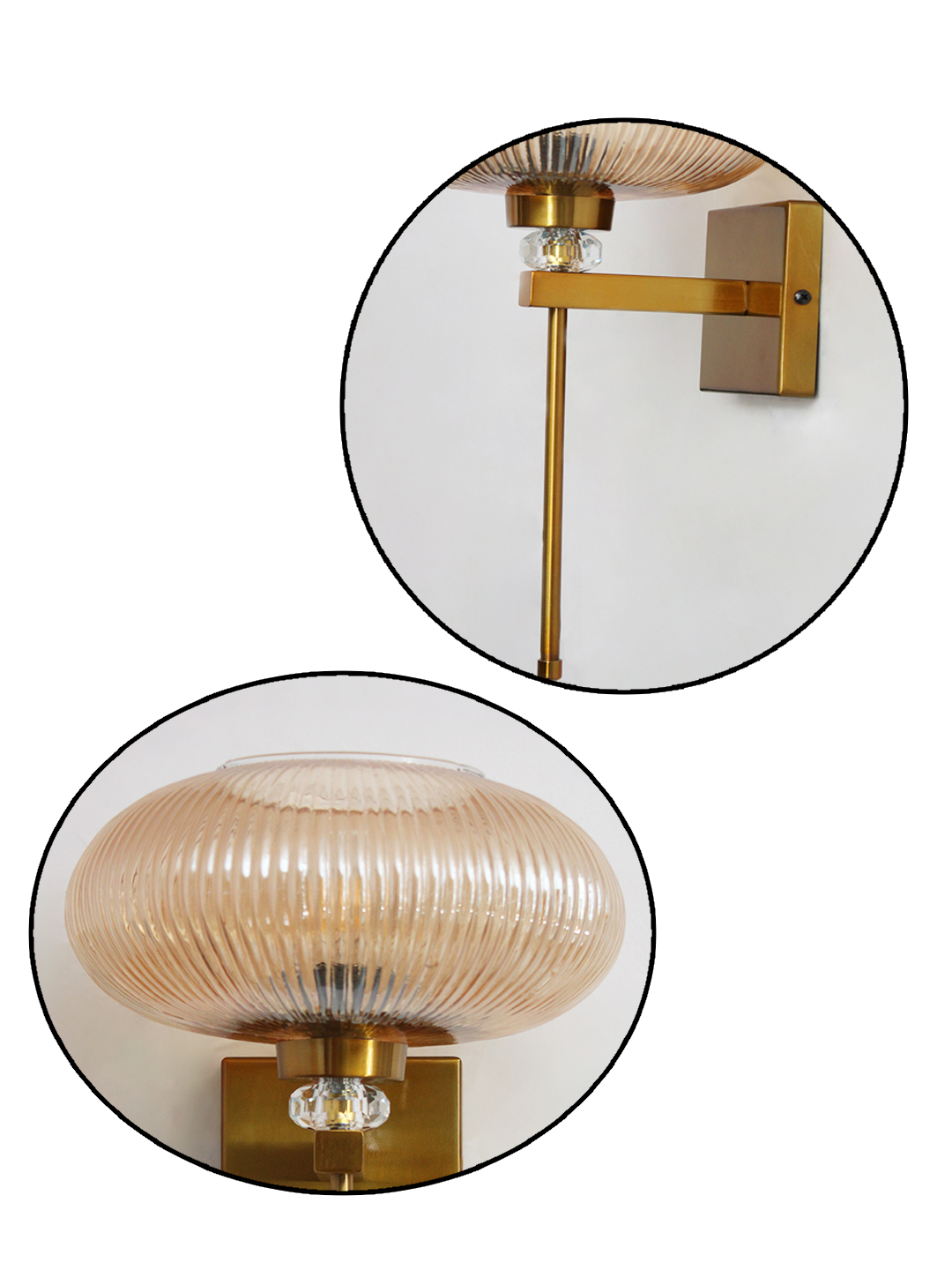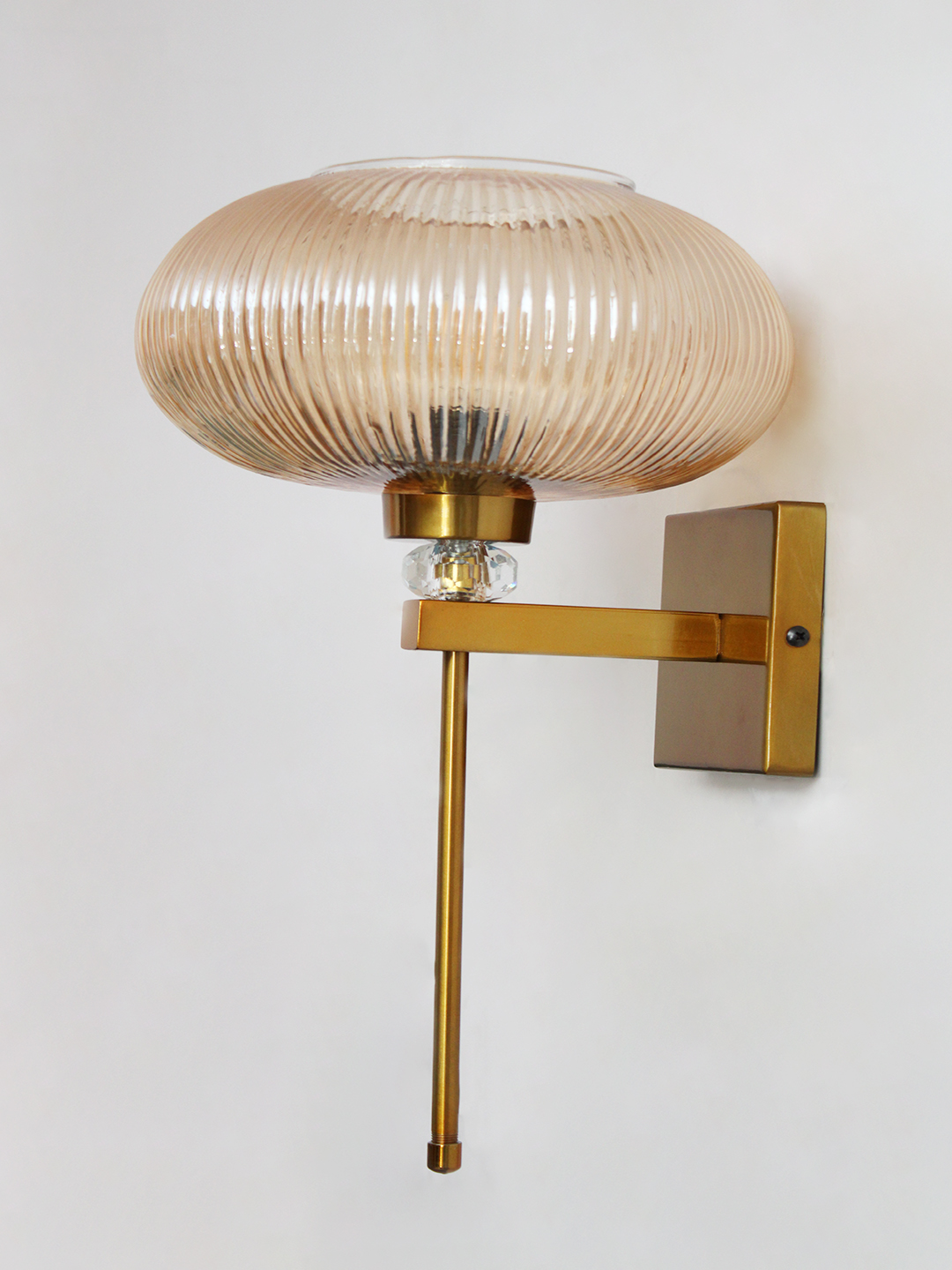 Elegant Amber Ribbed Kachori Glass Wall Light