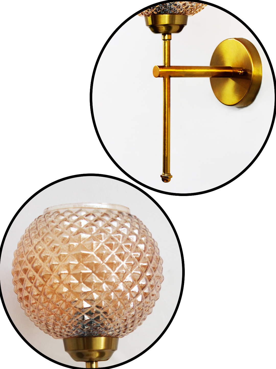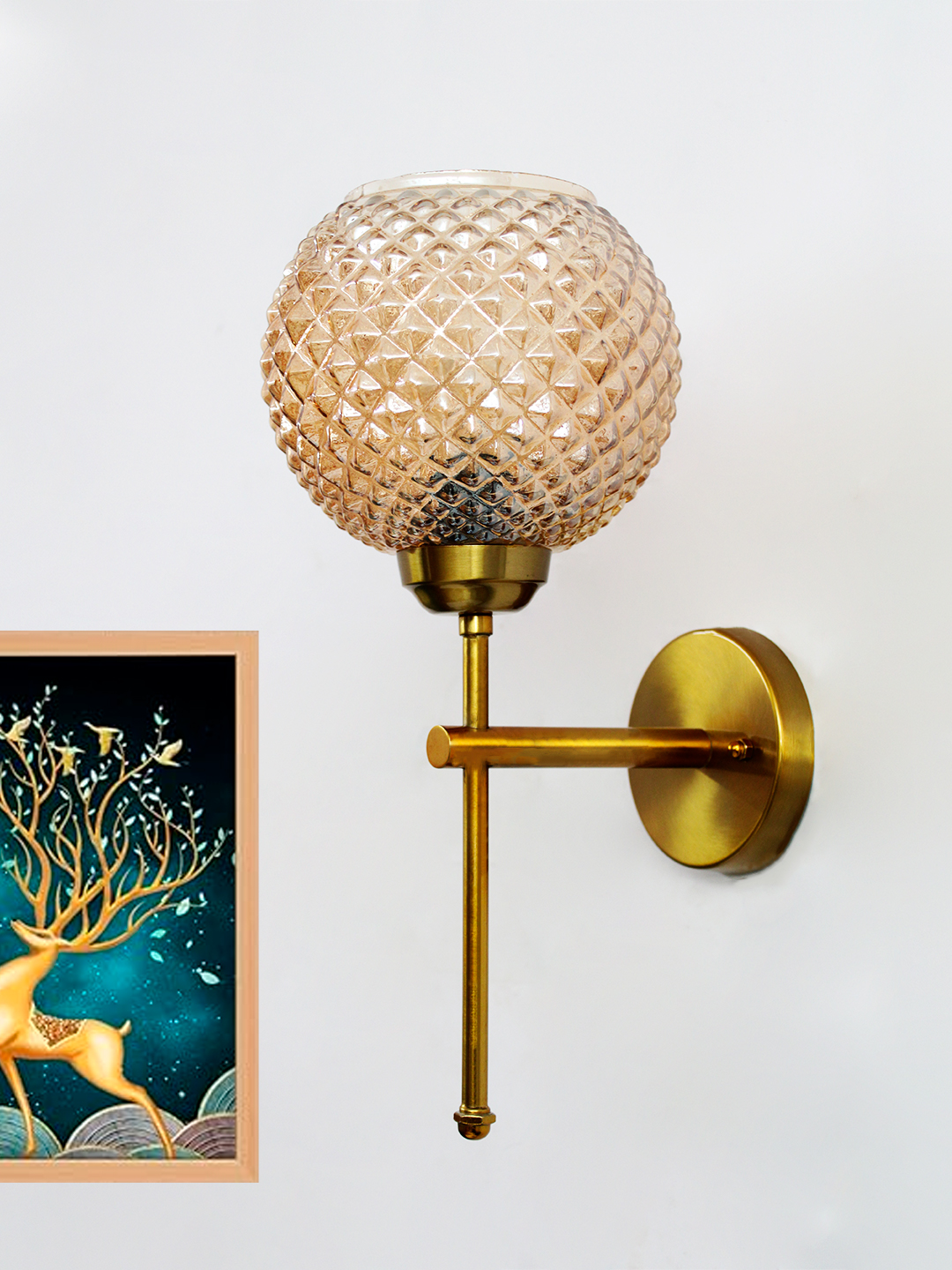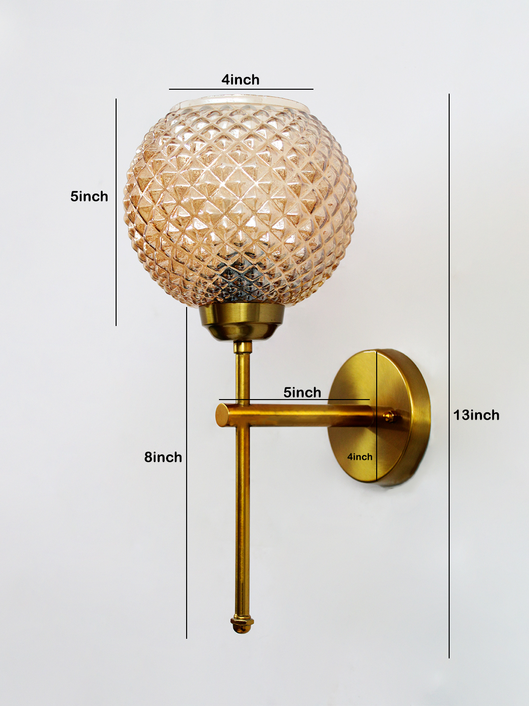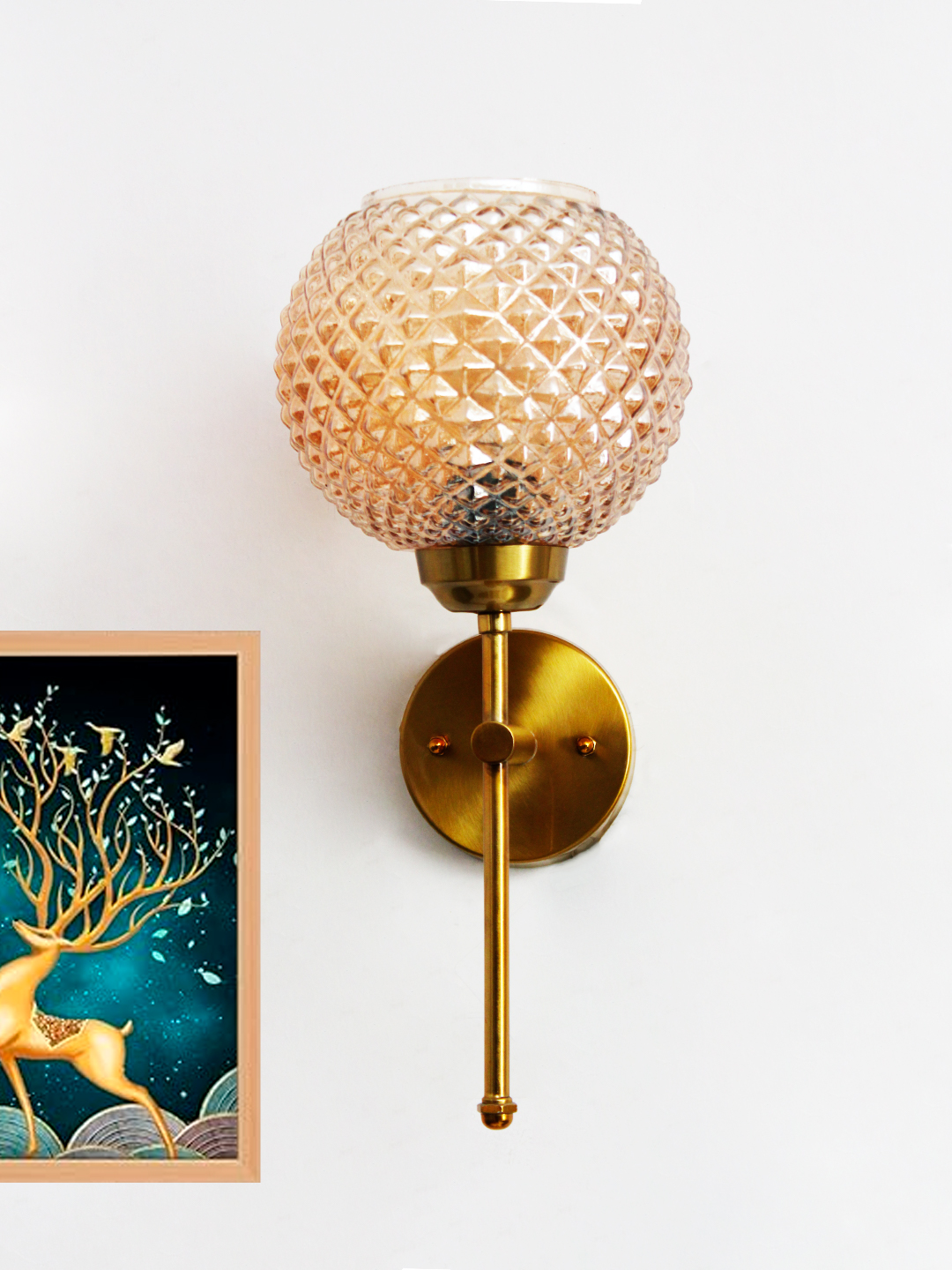 Home » Shop » Elegant Brass Wall Light Diamond Amber Glass Fixture