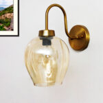 Home » Shop » Elegant Brass Wall Sconce Amber Glass Modern Lighting