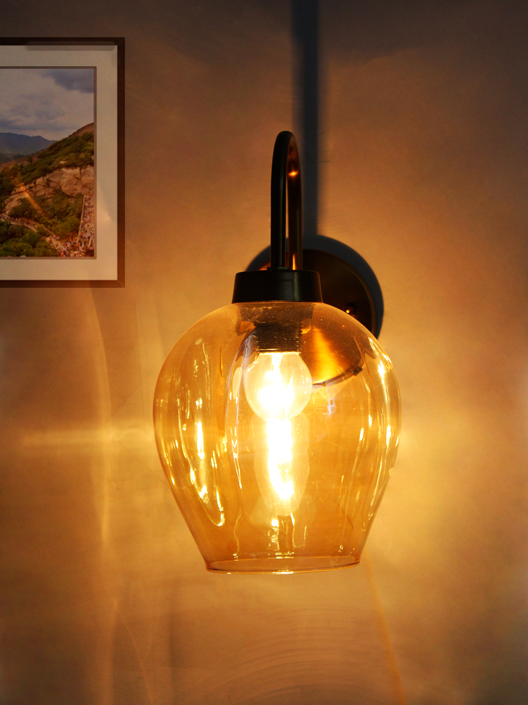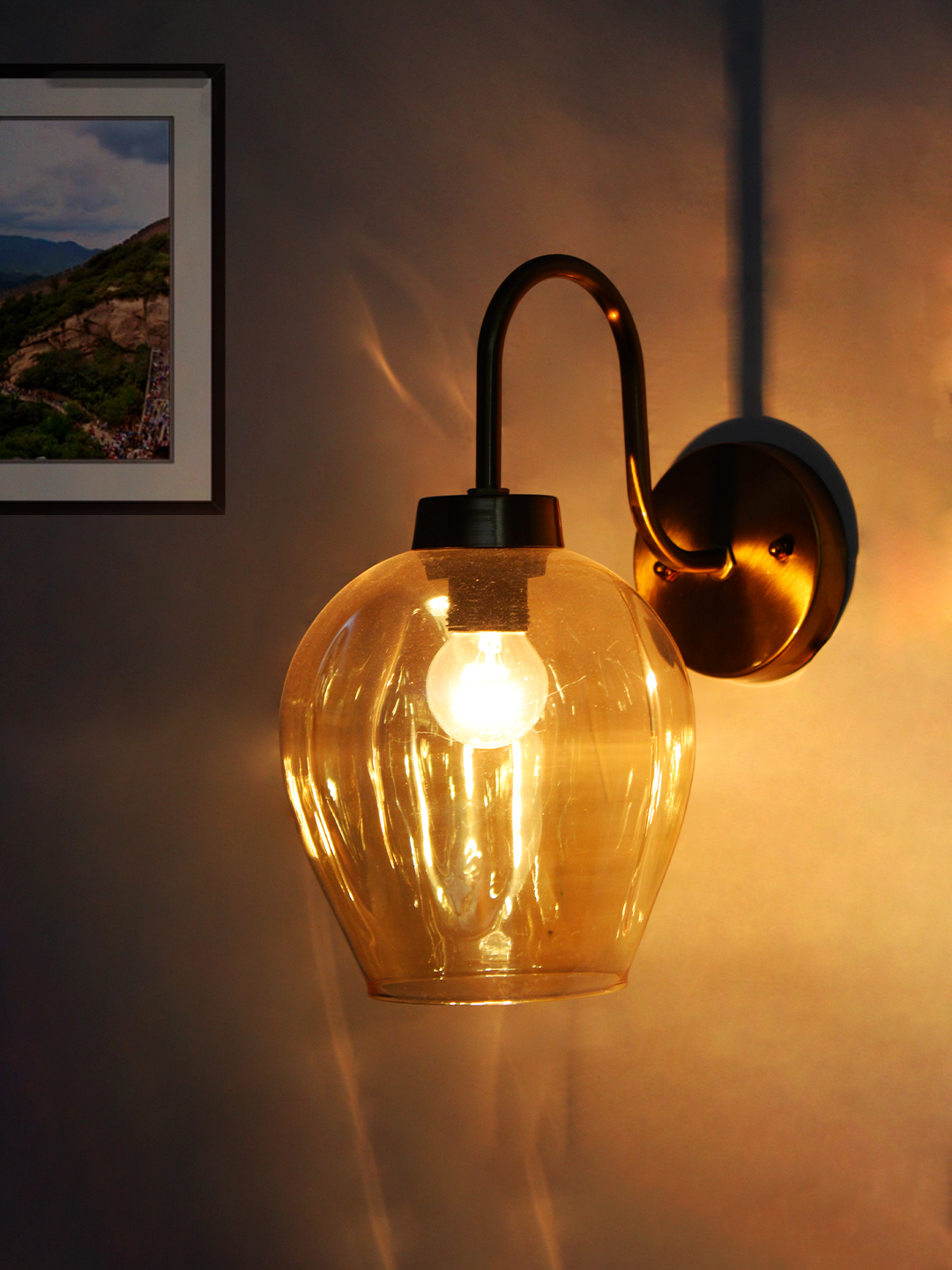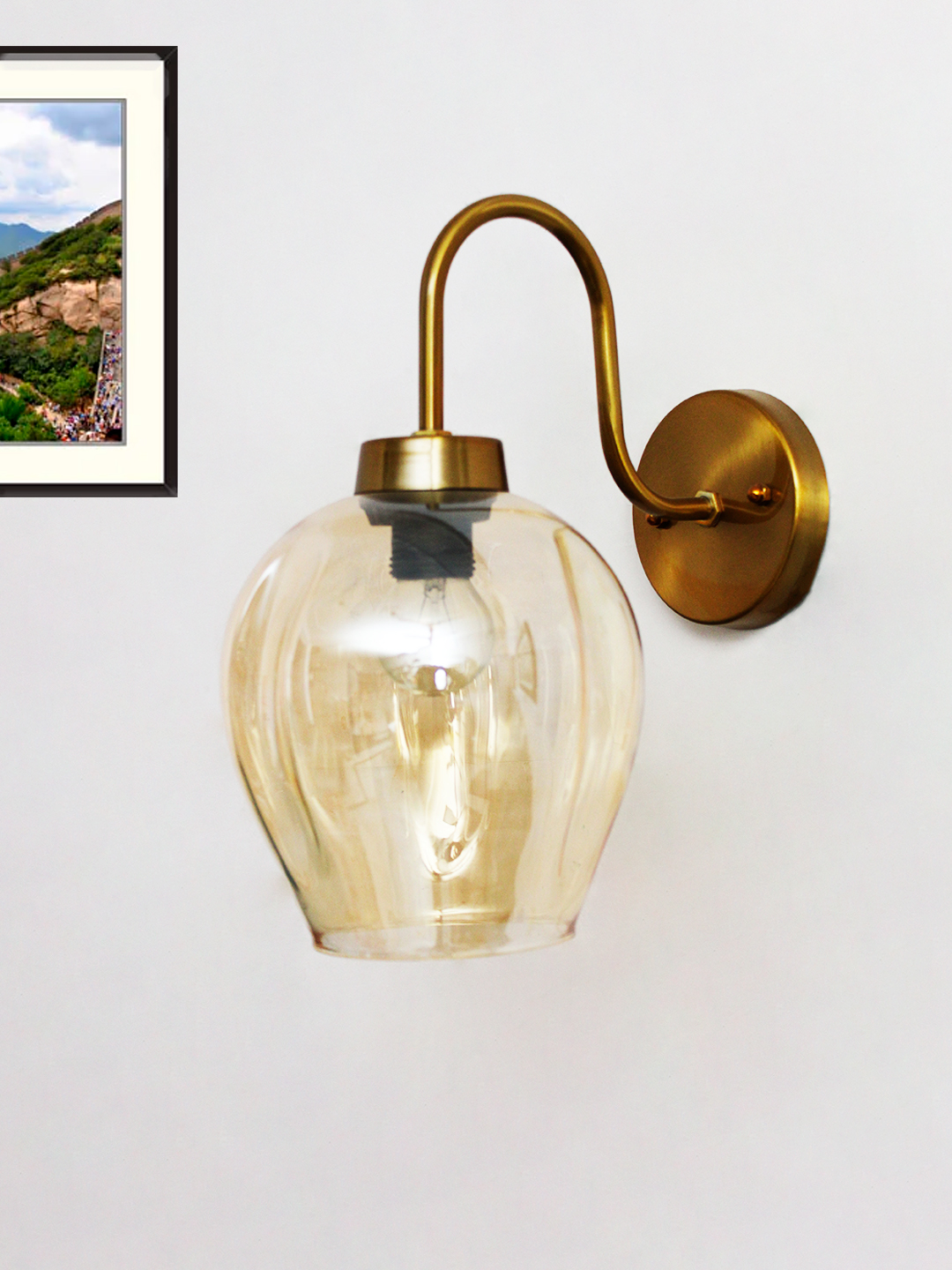Enhance your home décor with this modern wall light, a perfect blend of style, durability, and functionality. Designed with a premium metal body in a luxurious gold/brass finish, this wall lamp adds a sophisticated touch to any interior. The elegant amber glass shade creates a warm ambient glow, making it ideal for living rooms, bedrooms, hallways, staircases, and hotel interiors.