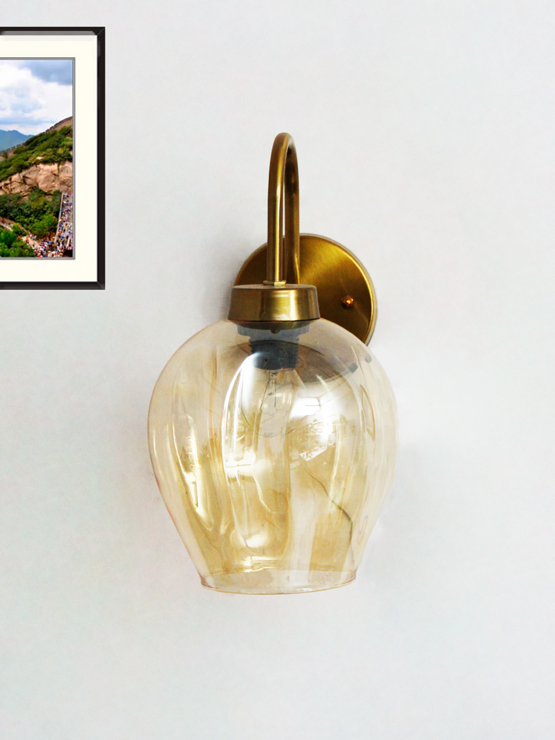 Be the first to review “Elegant Brass Wall Sconce Amber Glass Modern Lighting”