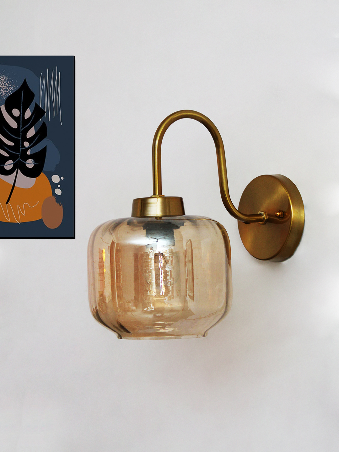 Elevate your interior lighting with this Modern Amber Round Cylinder Glass Wall Lamp, a perfect balance of contemporary design and timeless sophistication. Featuring a gracefully curved metal arm in a warm brushed brass finish, this wall light brings a refined, sculptural presence to any space. The smoked glass shade adds depth and character, softly diffusing light to create a warm, inviting ambiance without glare.