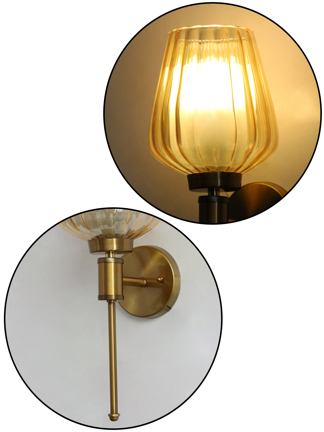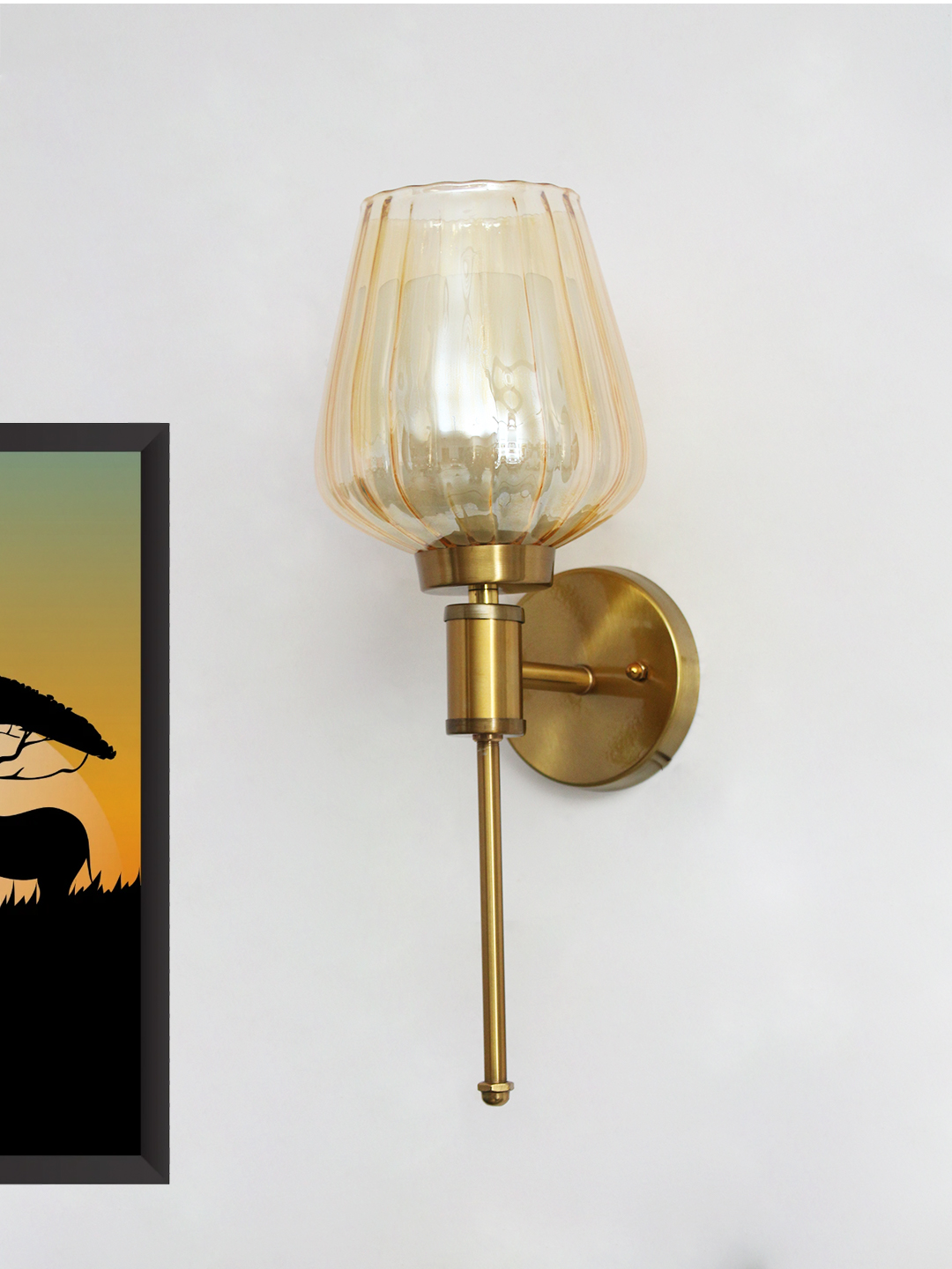 Enhance your interior lighting with this Modern Ribbed Gold Tulip Glass Wall Sconce, designed to bring warmth, texture, and refined character to your space. Featuring a beautifully fluted amber glass shade paired with a brushed brass body, this wall light blends classic craftsmanship with contemporary elegance.