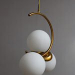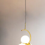 The pendant’s striking design features a curved gold armature that gracefully holds three 6-inch frosted glass globes, creating a perfect balance of style and functionality. This unique artistic form makes it ideal as a statement piece for living rooms, dining areas, foyers, staircases, bedrooms, cafés, or boutique spaces. Whether installed as a single centerpiece or in multiples, the warm ambient lighting adds a cozy yet upscale atmosphere to any room.