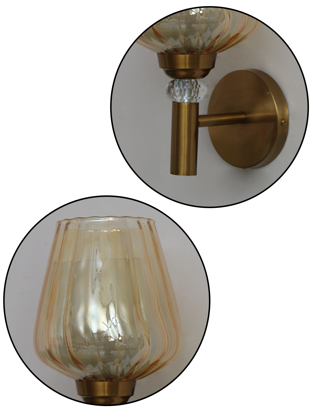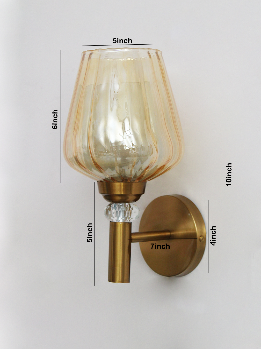 Bring warmth, elegance, and timeless charm to your interior with this Petal-Shaped Amber Gold Glass Wall Light. Designed to balance classic materials with a modern silhouette, this fixture features a softly ribbed amber-tinted glass shade paired with a brushed brass finish. The result is a refined lighting piece that enhances both contemporary and vintage-inspired spaces.