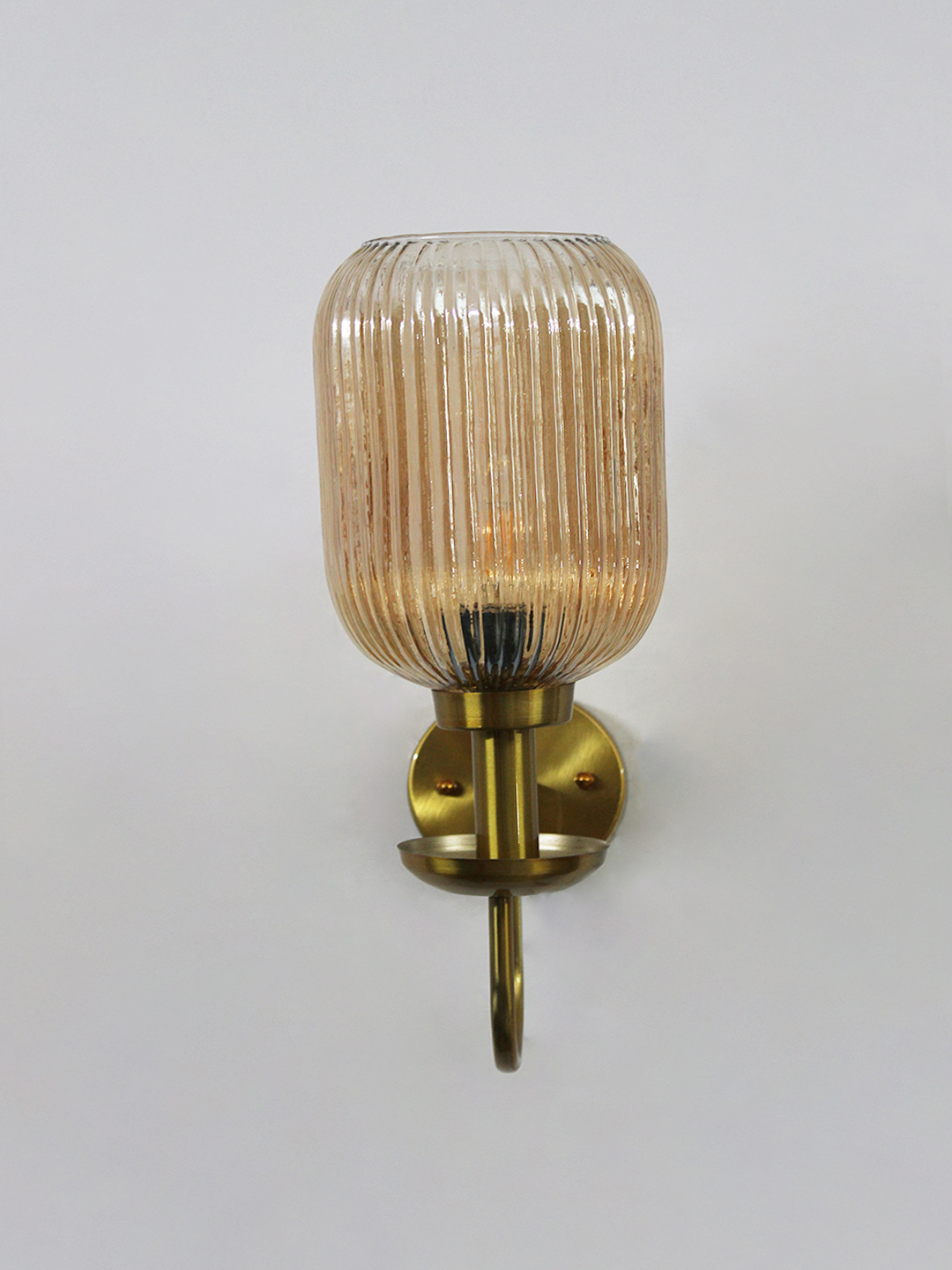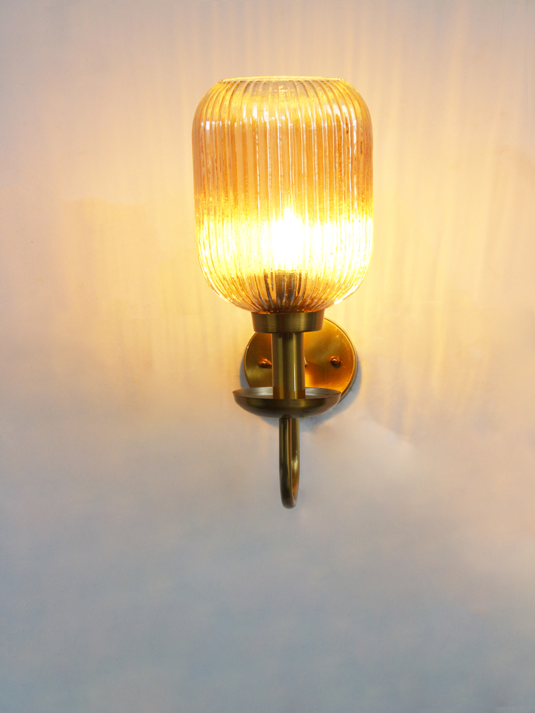 The Amber Glass Wall Lamp features a stunning ribbed amber glass shade that creates a warm and inviting glow. The textured glass softly diffuses light, producing a cozy atmosphere that feels relaxing and luxurious. This makes it ideal for accent lighting, bedside reading corners, hallway decoration, or creating a welcoming mood in hospitality spaces.