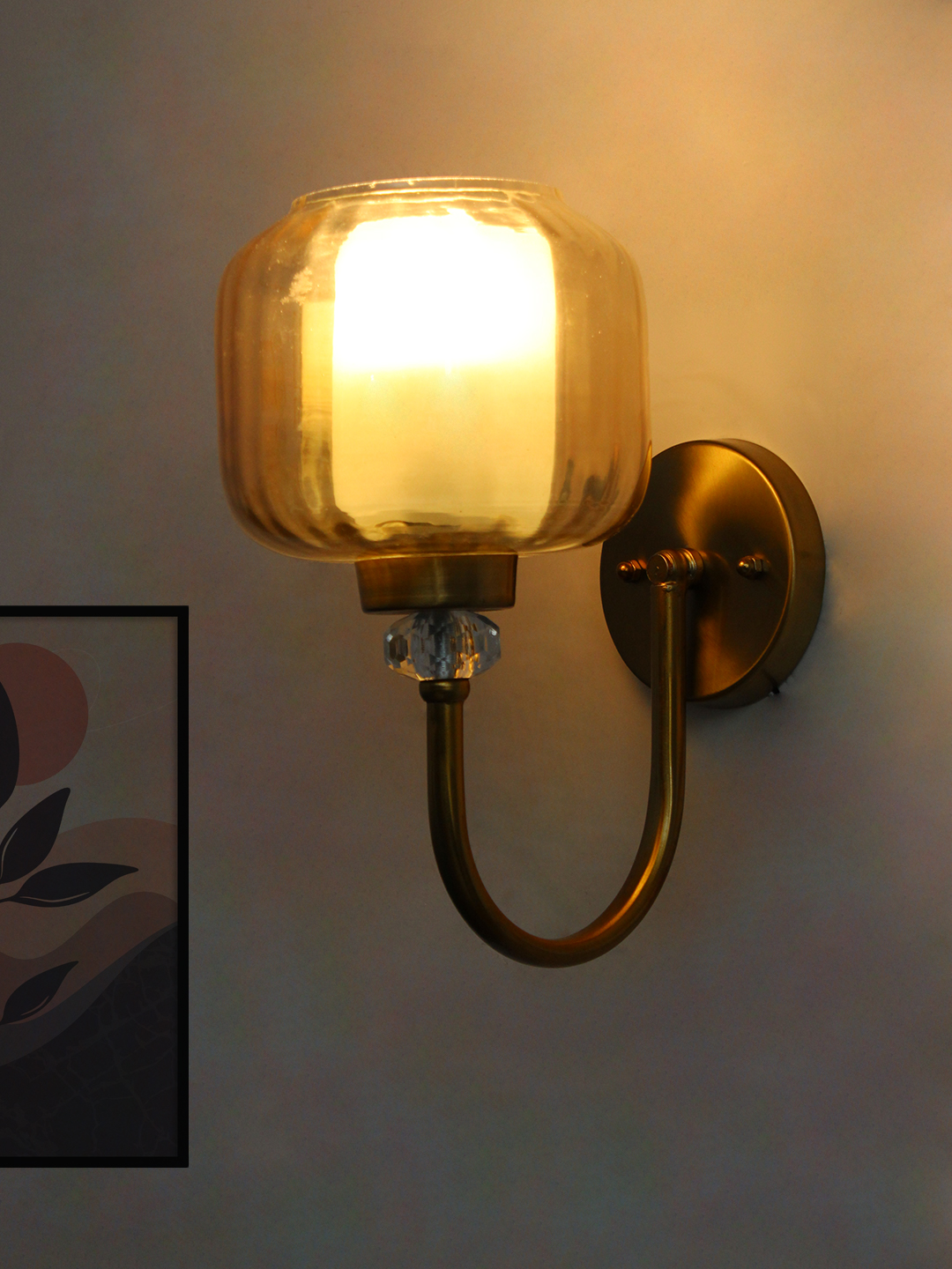 The softly rounded amber glass shade creates a gentle, inviting glow that enhances the ambiance of any space. Its warm tint subtly diffuses the light, producing a cozy atmosphere ideal for relaxed and intimate settings. The reflective finish of the glass adds depth and visual interest, while maintaining a smooth, polished appearance.