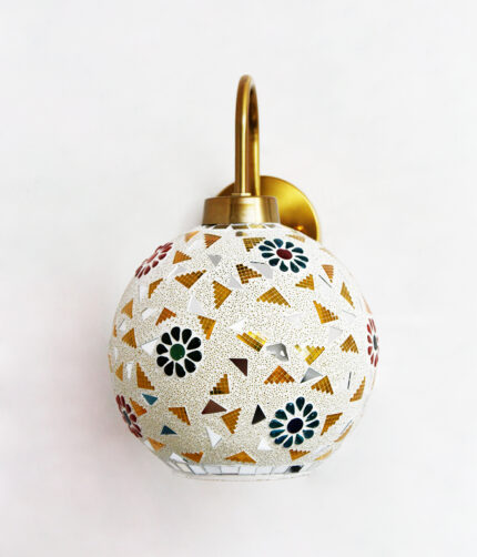 Boho Brass Wall Light Mosaic Glass Shade Fixture